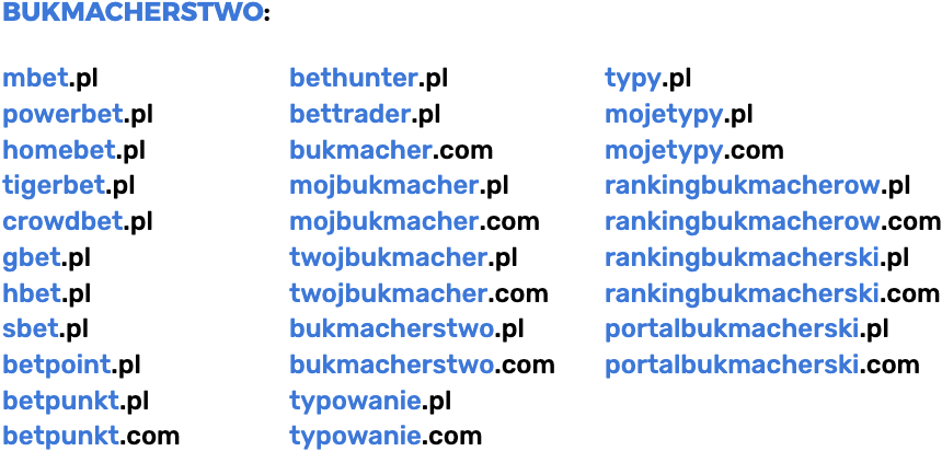 Cennik wyjściowy wszystkich domen (aktualny do 31.03.2026) będzie dostępny wkrótce TUTAJ. W celu potwierdzenia aktualnej ceny domeny lub złożenia oferty prosimy o skontaktowanie się z nami pod adresem: [email protected]